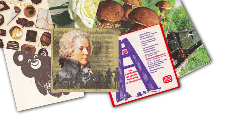 Sbírka papírových ubrousků, podšálků a prostírání